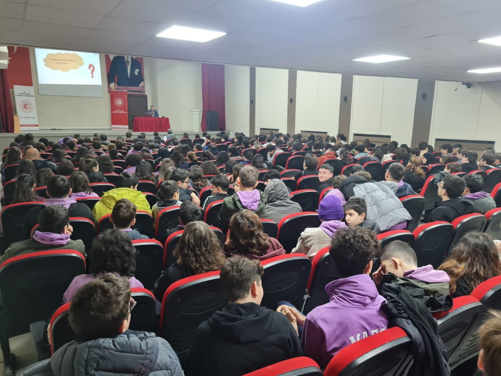 2025 Uluslararası Kooperatifler Yılı Etkinlikleri Kapsamında İlköğretim Öğrencilerine Yönelik Kooperatif Eğitimi Sinop Merkez Şehit Şakir Elkovan Halk Eğitim Merkezi Konferans Salonunda Yapıldı.