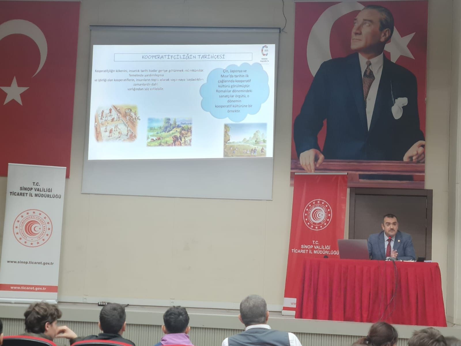 Bu faaliyetlerin 2.si olan ilk ve ortaöğretim kurumlarında kooperatifçilik ve dayanışma kültürünün çocuklara çeşitli görsellerle anlatılması faaliyeti Sinop Milli Eğitim Müdürlüğü sorumluluğunda yapılmıştır.2025 Uluslararası Kooperatifler Yılı Etkinlikleri çerçevesinde 09 Aralık 2025 günü Saat:09:30'da İlimiz Merkez Şehit Şakir Elkovan Halk Eğitim Merkezi Konferans salonunda ilköğretim öğrencilerine yönelik kooperatifçilik ve dayanışma kültürünün anlatıldığı sunum İl Müdürümüz Sayın Yavuz Selim AYKAN tarafından verildi.