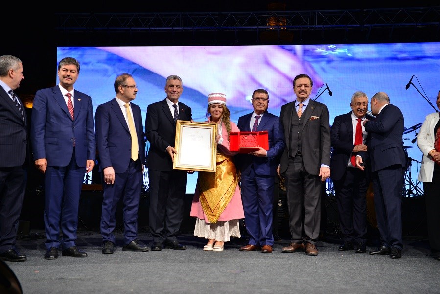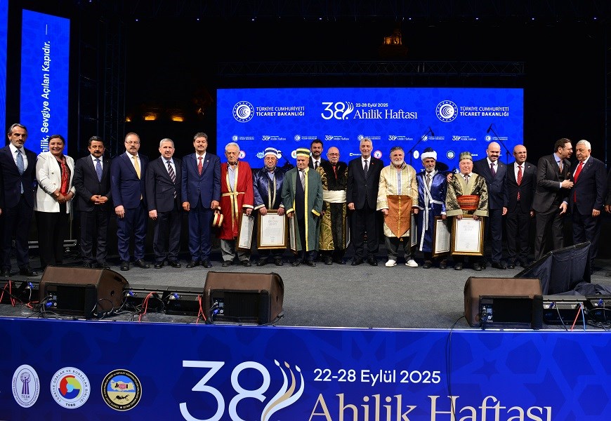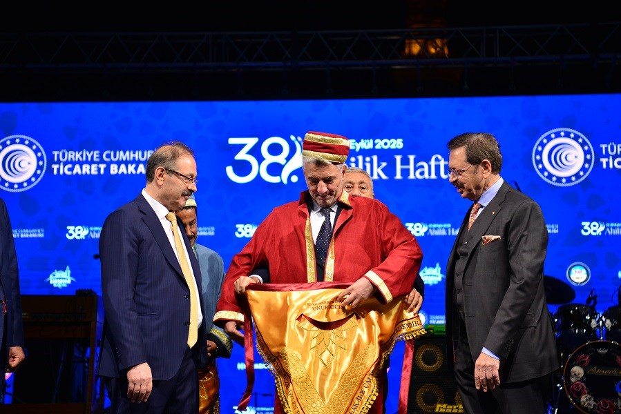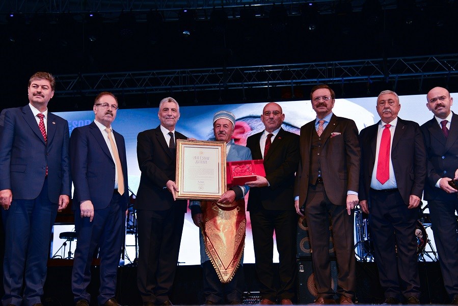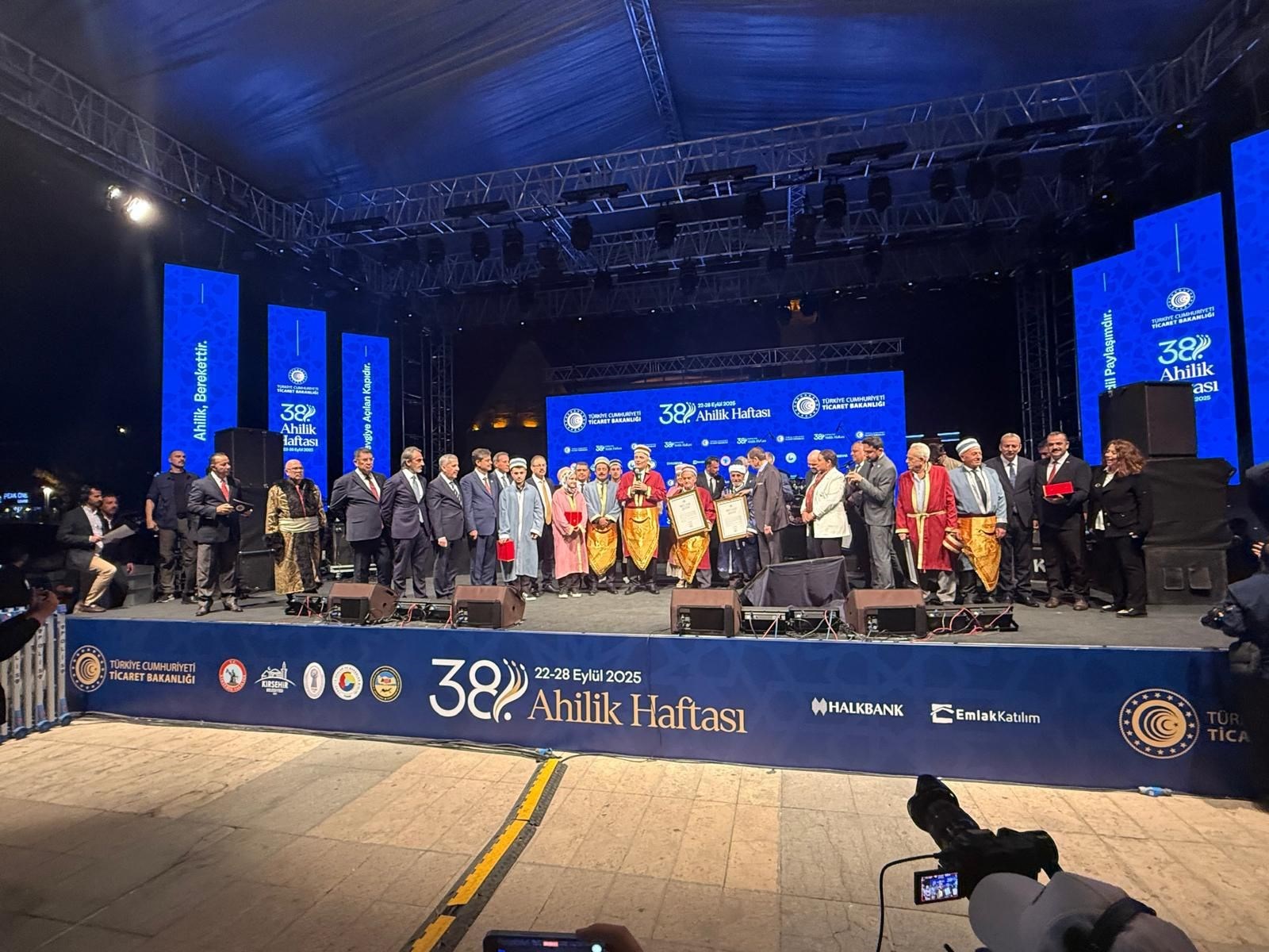 Şed kuşatma törenin hemen ardından Sayın Ticaret Bakanımız Ömer Bolat’a, TESK Başkanı, TESKOMB Başkanı ve TOBB Başkanı tarafından Ahilik Onur Ödülü takdim edildi.
