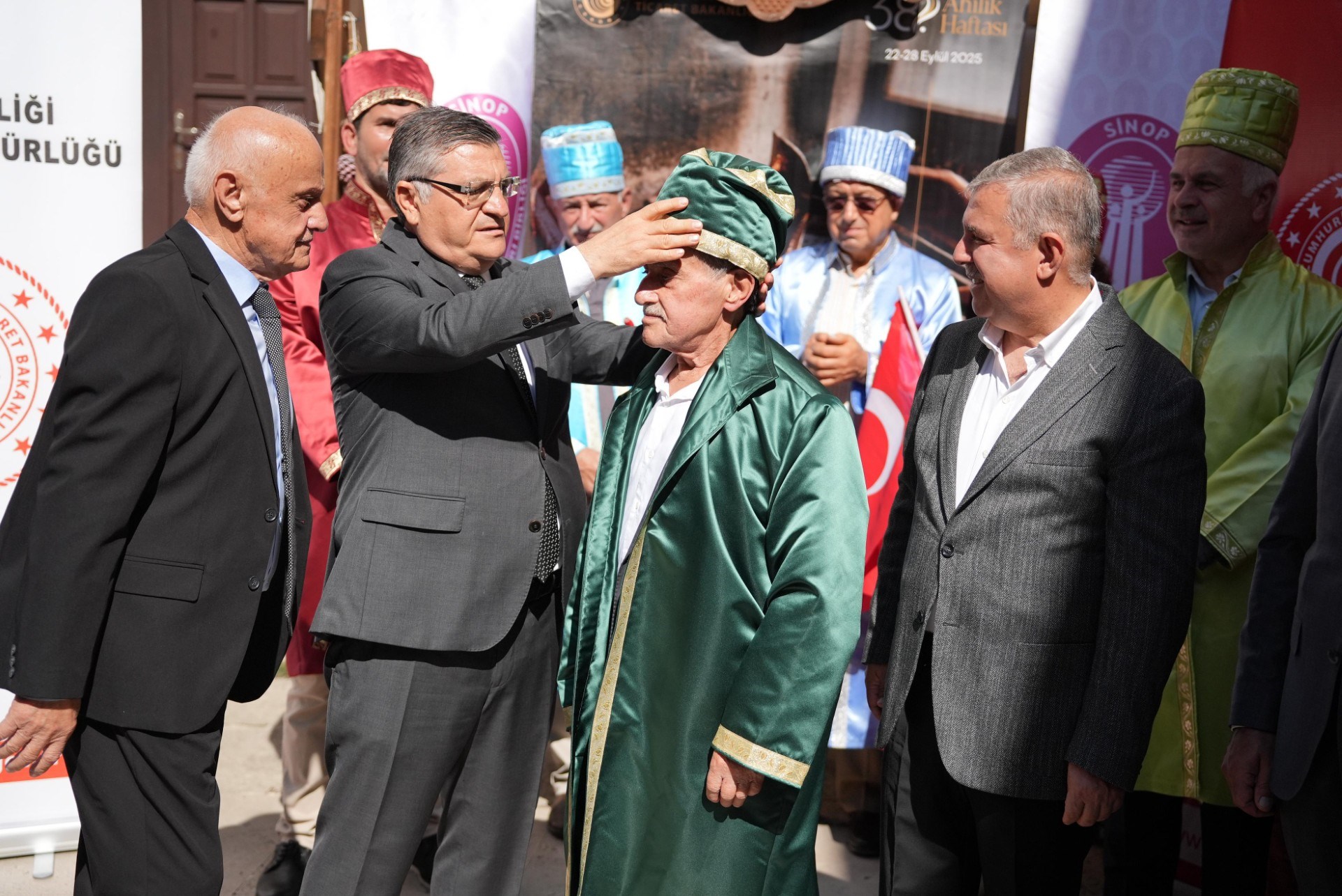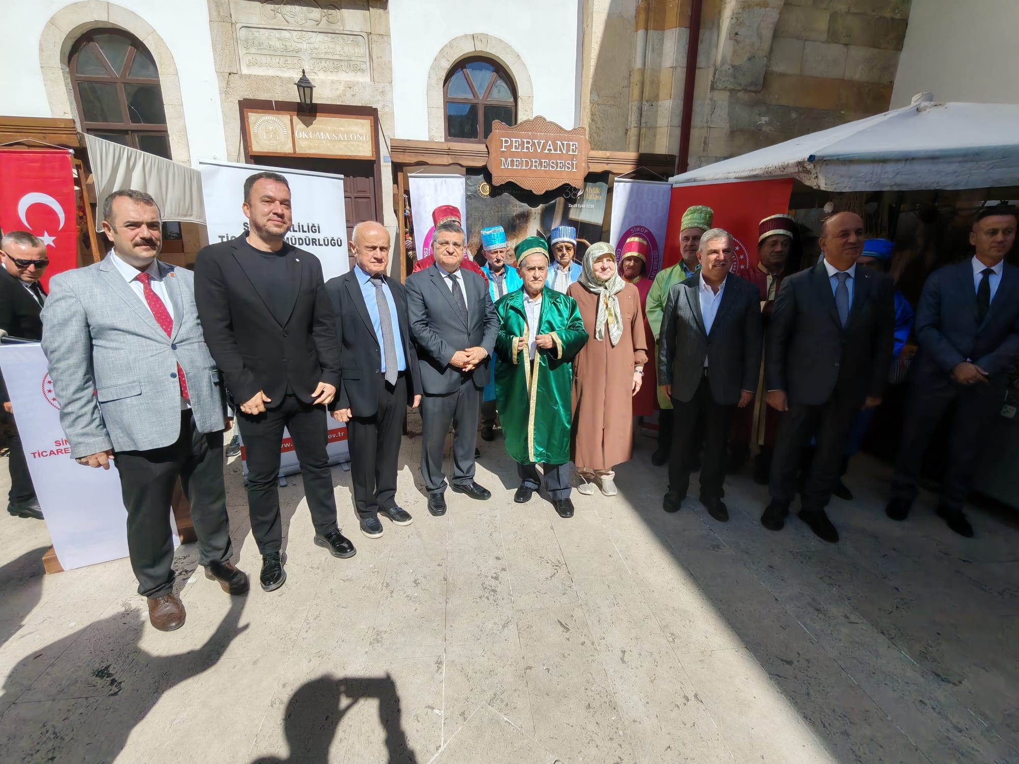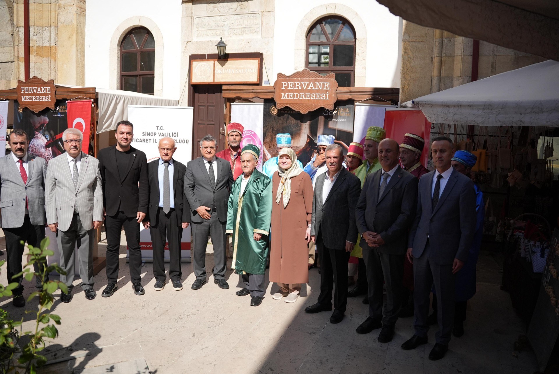 24 Eylül 2025Her yıl kutlanan bu yıl 38'incisi düzenlenen Geleneksel Ahilik Haftası etkinlikleri Saat:10:00 da Atatürk Anıtına çelenk sunumu ile başladı.Mehteran takımının solo gösterisi sonrası Saat:10:15'da Hükümet Konağı önünden Sinop Pervane Medresesine kadar Mehteran Takımı eşliğinde kortej yürüyüşü ile başladı.Sinop Pervane Medresinde yapılan kutlama proğramına Sinop Valisi Sayın Dr.Mustafa ÖZARSLAN, Ak Parti Sinop Miletvekili Sayın Dr.Nazım MAVİŞ , Sinop Belediye Başkanı Sayın Metin GÜRBÜZ ile Kurum Amirleri katılım sağladılar. Bu yıl 38'ncisi düzenlenen Ahilik Haftasında Yılın Çırağı seçilen Atakan ÖZDEN 'İn ödülünü Sinop Belediye Başkanı Sayın Metin GÜRBÜZ , Yılın Kalfası aynı zamanda Türkiye'de de Yılın Kalfası seçilen Çağdaş TİRYAKİ'nin ödülünü Ak Parti Sinop Milletvekili Sayın Nazım MAVİŞ , Yılın Ahisi seçilen aynı zamanda Türkiye'de de Yılın Ahisi seçilen Şekerci Mehmet GÜRBÜZ ödüllerini Sinop Valisi Sayın Dr.Mustafa ÖZARSLAN'ın elinden aldılar. Yılın Ahisi seçilen Şekerci Mehmet GÜRBÜZ'e Sinop Valisi Dr.Mustafa ÖZARSLAN tarafından , Sinop Valisi Sayın Dr.Mustafa ÖZARSLAN'a da Sinop Esnaf ve Sanatkarlar Odaları Birliği Başkanı Sayın Mehmet YÜKSEL tarafından kaftan giydirildi. Tören sonunda katılım sağlayanlara Ahilik Pilavı ve Boyabat Ezmesi ikram edildi.