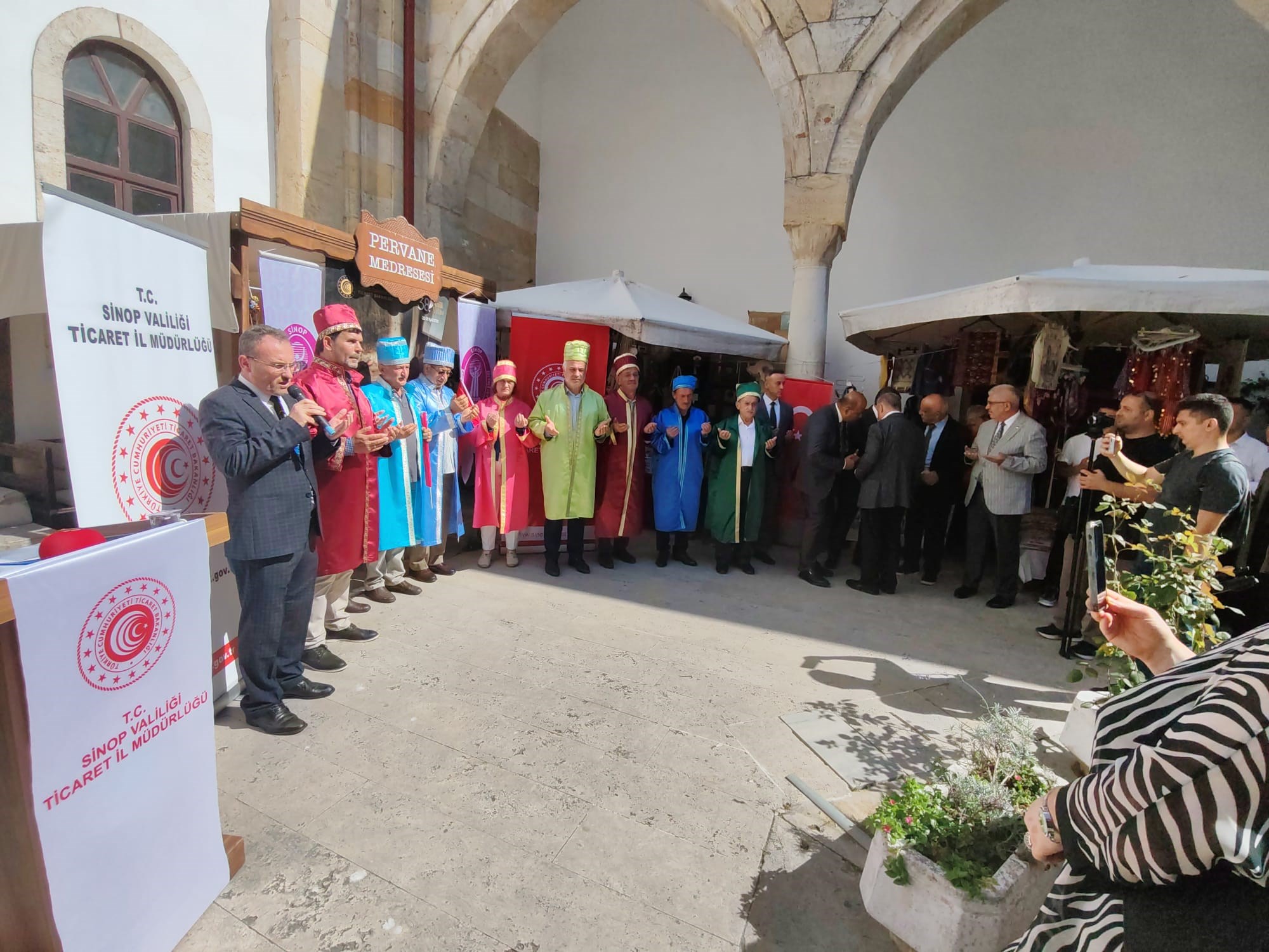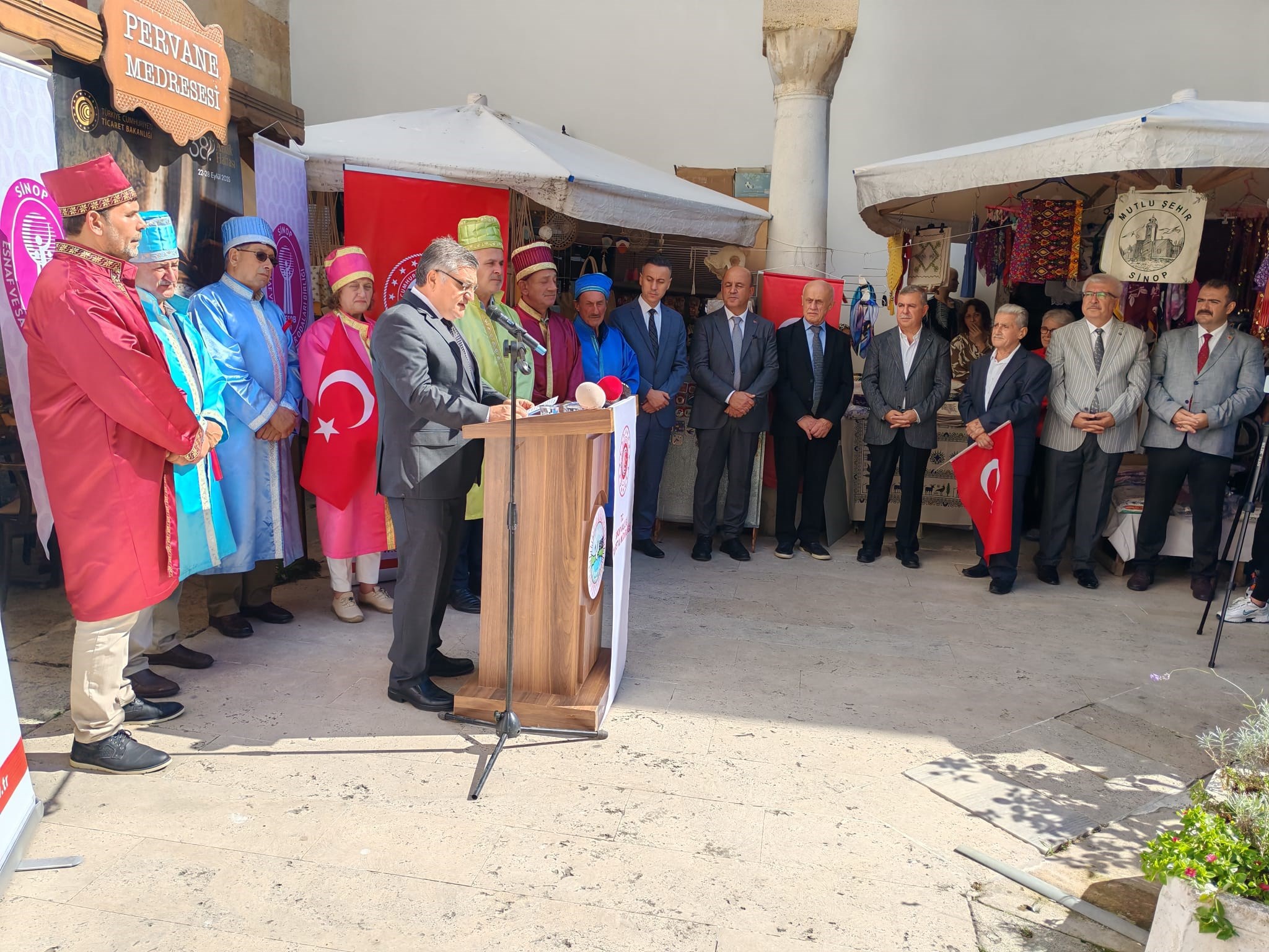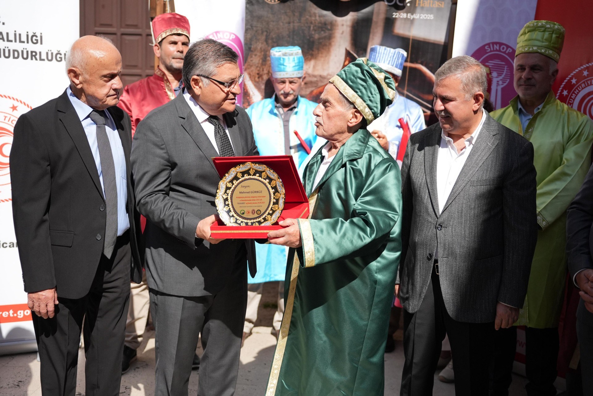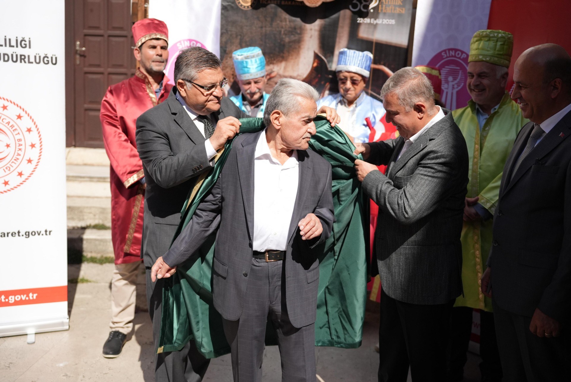 24 Eylül 2025Her yıl kutlanan bu yıl 38'incisi düzenlenen Geleneksel Ahilik Haftası etkinlikleri Saat:10:00 da Atatürk Anıtına çelenk sunumu ile başladı.Mehteran takımının solo gösterisi sonrası Saat:10:15'da Hükümet Konağı önünden Sinop Pervane Medresesine kadar Mehteran Takımı eşliğinde kortej yürüyüşü ile başladı.Sinop Pervane Medresinde yapılan kutlama proğramına Sinop Valisi Sayın Dr.Mustafa ÖZARSLAN, Ak Parti Sinop Miletvekili Sayın Dr.Nazım MAVİŞ , Sinop Belediye Başkanı Sayın Metin GÜRBÜZ ile Kurum Amirleri katılım sağladılar. Bu yıl 38'ncisi düzenlenen Ahilik Haftasında Yılın Çırağı seçilen Atakan ÖZDEN 'İn ödülünü Sinop Belediye Başkanı Sayın Metin GÜRBÜZ , Yılın Kalfası aynı zamanda Türkiye'de de Yılın Kalfası seçilen Çağdaş TİRYAKİ'nin ödülünü Ak Parti Sinop Milletvekili Sayın Nazım MAVİŞ , Yılın Ahisi seçilen aynı zamanda Türkiye'de de Yılın Ahisi seçilen Şekerci Mehmet GÜRBÜZ ödüllerini Sinop Valisi Sayın Dr.Mustafa ÖZARSLAN'ın elinden aldılar. Yılın Ahisi seçilen Şekerci Mehmet GÜRBÜZ'e Sinop Valisi Dr.Mustafa ÖZARSLAN tarafından , Sinop Valisi Sayın Dr.Mustafa ÖZARSLAN'a da Sinop Esnaf ve Sanatkarlar Odaları Birliği Başkanı Sayın Mehmet YÜKSEL tarafından kaftan giydirildi. Tören sonunda katılım sağlayanlara Ahilik Pilavı ve Boyabat Ezmesi ikram edildi.