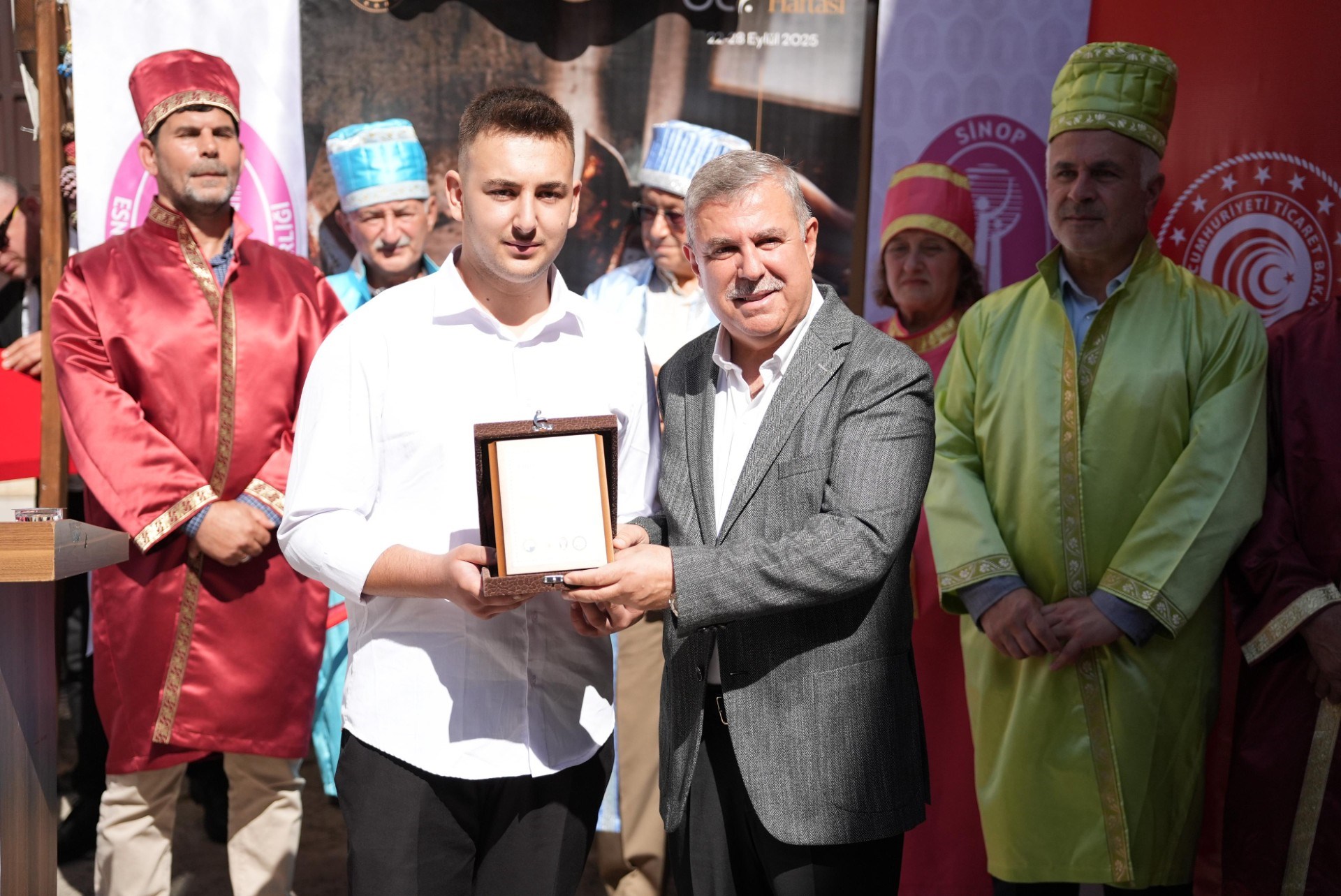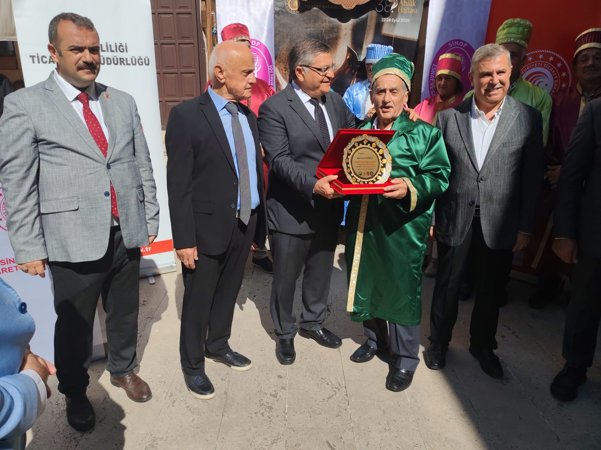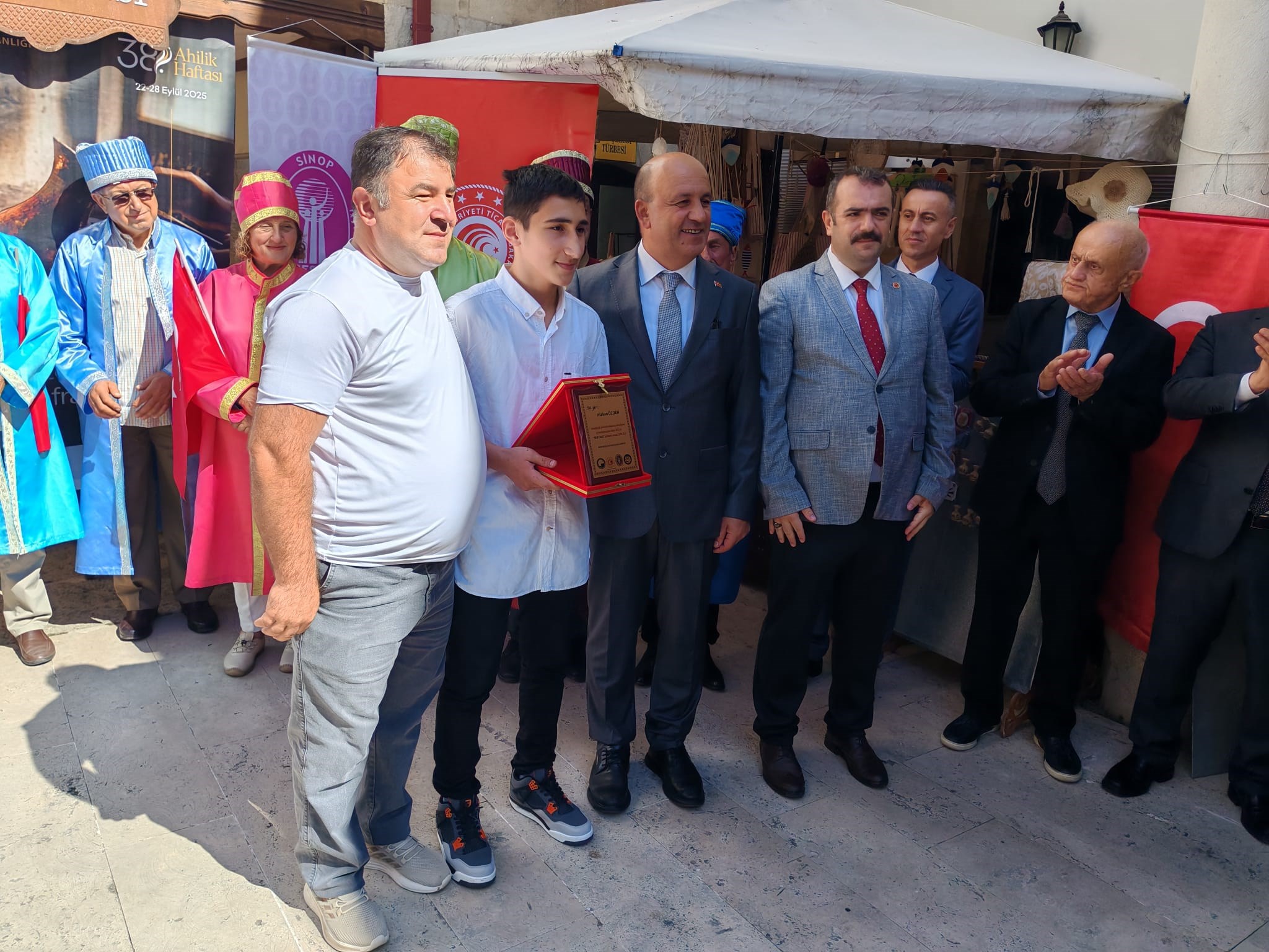 Bu yıl 38'ncisi düzenlenen Ahilik Haftasında Yılın Çırağı seçilen Atakan ÖZDEN 'İn ödülünü Sinop Belediye Başkanı Sayın Metin GÜRBÜZ , Yılın Kalfası aynı zamanda Türkiye'de de Yılın Kalfası seçilen Çağdaş TİRYAKİ'nin ödülünü Ak Parti Sinop Milletvekili Sayın Nazım MAVİŞ , Yılın Ahisi seçilen aynı zamanda Türkiye'de de Yılın Ahisi seçilen Şekerci Mehmet GÜRBÜZ ödüllerini Sinop Valisi Sayın Dr.Mustafa ÖZARSLAN'ın elinden aldılar.