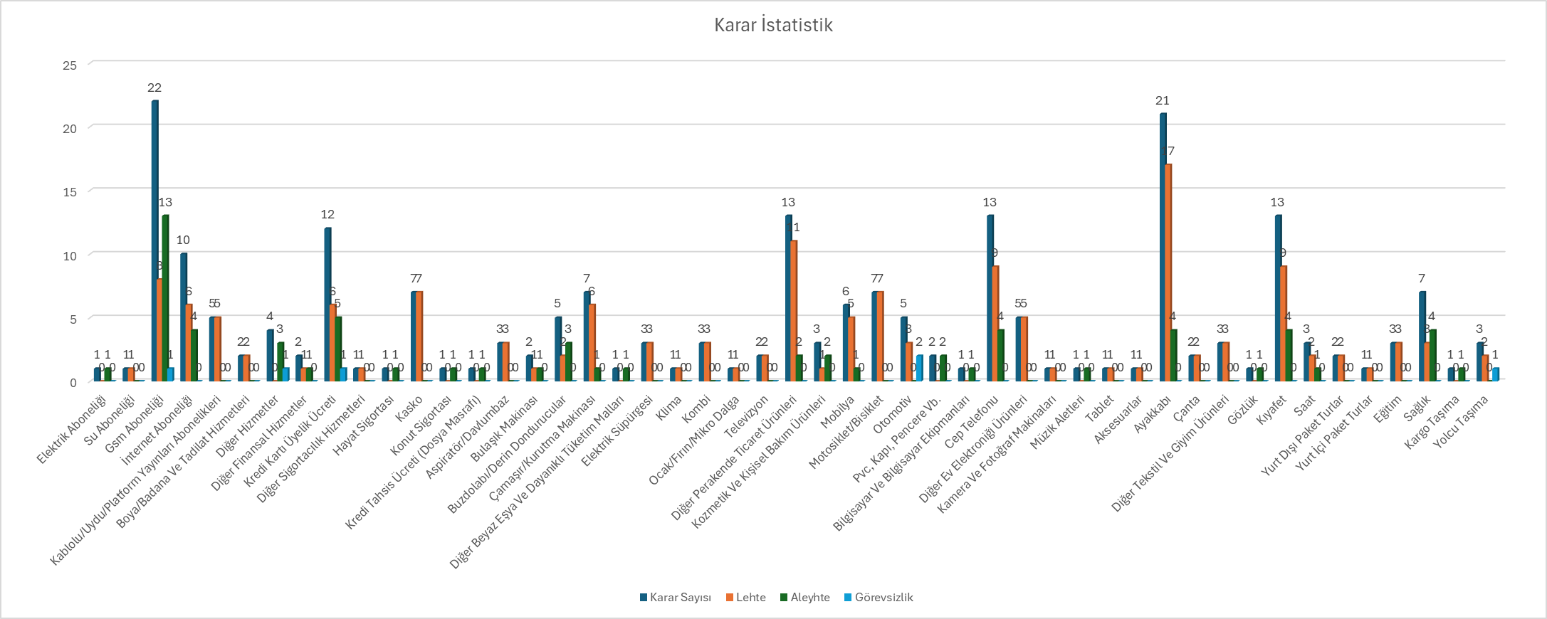 İlimizde 2025 Ekim ayında ise yapılan toplantılarda ise 217 adet karar verildi.Bu toplantılarda ise tüketiciler tarafından şikâyeti en fazla yapılan ürün ve hizmet grubu