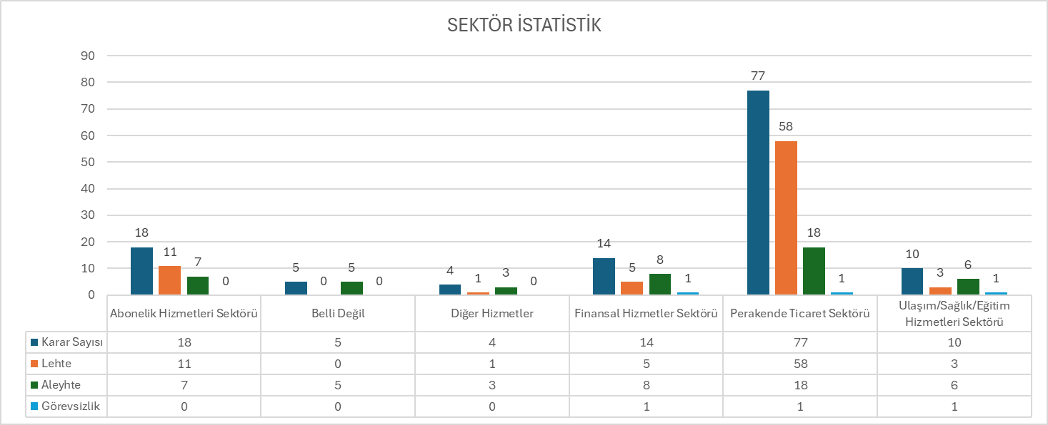 Sektör bazında değerlendirildiğinde ise en çok başvuruları sonuçlanan